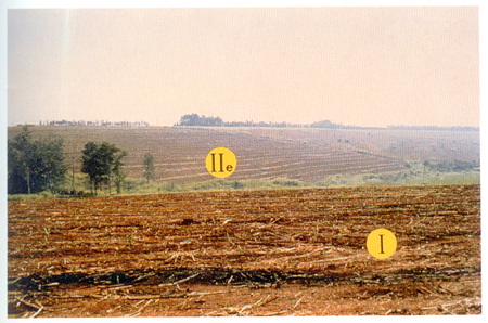Na figura 2, a classe I pode ser representada pelo Latossolo Vermelho eutrófico típico textura argilosa num local com declividade de 0-3%, ao contrário da classe IIe onde o mesmo ocorre em local com declividade de 3-6%.