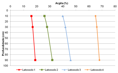Figura 1. Distribuição de argila nos perfis representativos dos Latossolos.