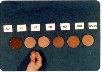 Depois de um treinamento intensivo é possível estimar o teor de argila de acordo com as amplitudes de textura arenosa, média, argilosa e muito argilosa (figura 2). Uma comparação entre a estimativa do teor de argila no tato (em vermelho) e a determinação de laboratório (verde) é apresentada na figura 3.